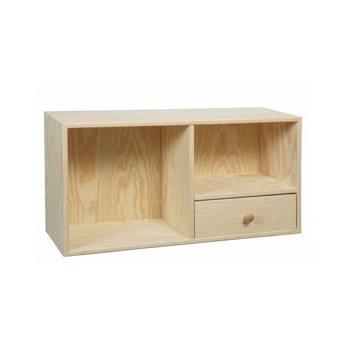Bokhylla furu 30 x 60 x 19 cm, 1 låda och 2 fack