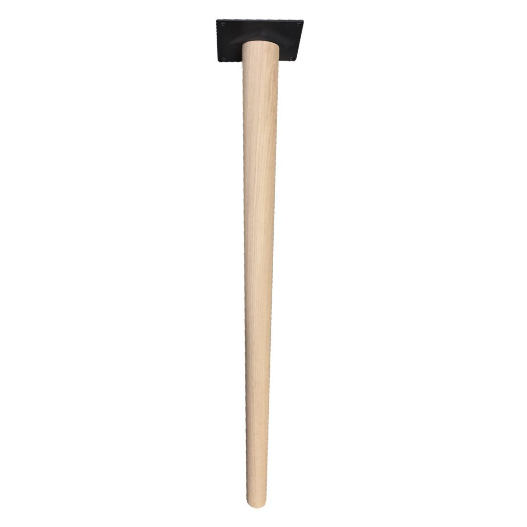 H73 cm. Matbordsben i massiv obehandlad ek med kraftigt monteringsfäste. Kan användas till matbord eller skrivbord. Bordsbenet är vinkelrätt mot bordet. Själva metallplattan är 13x13 cm. Diametern på bordsbenet är 5,5 cm upptill. och i botten 2,5 cm. Vi rekommenderar en maxvikt på 100 kg vid användning av 4 st. ben under en bordsskiva.