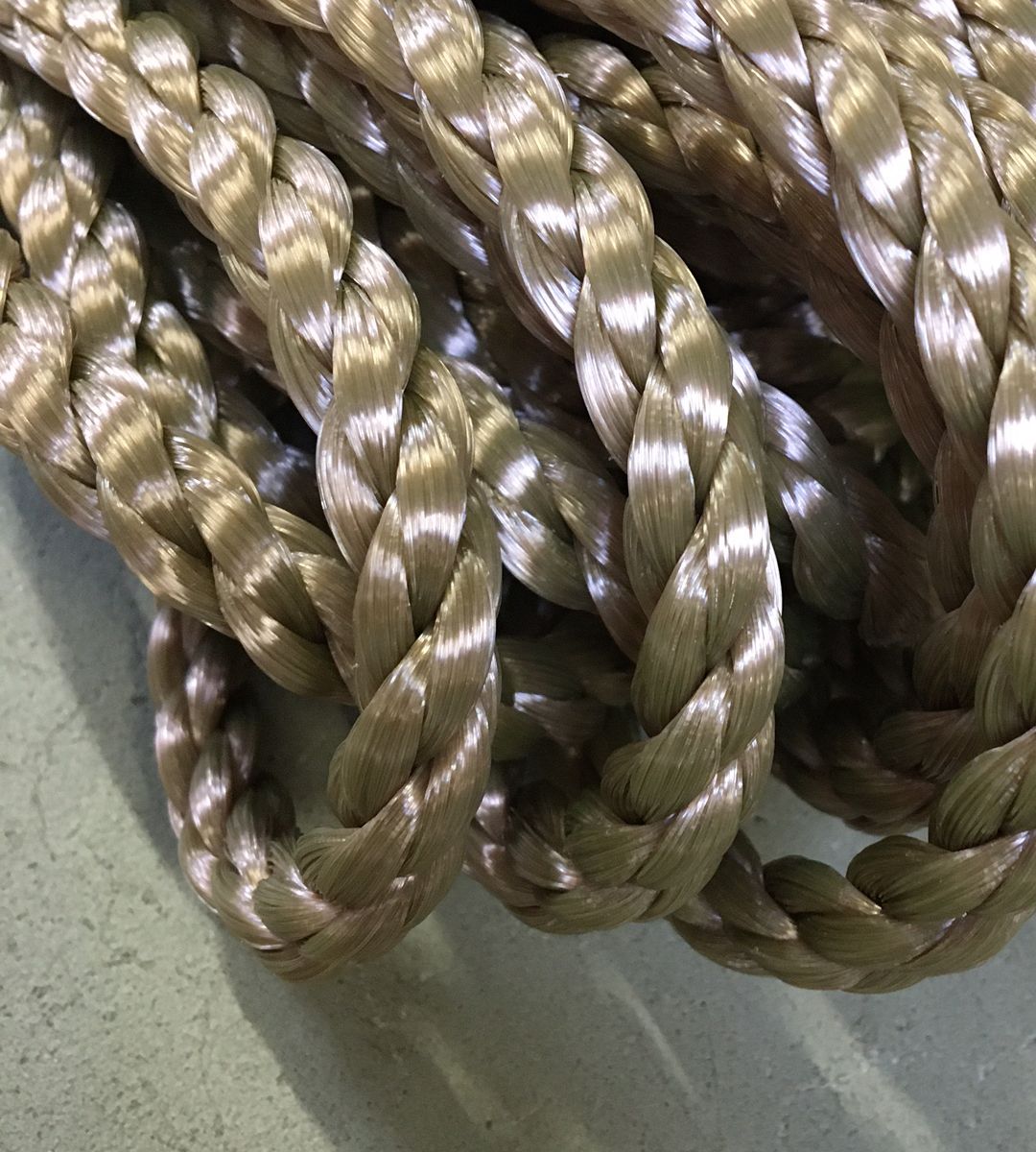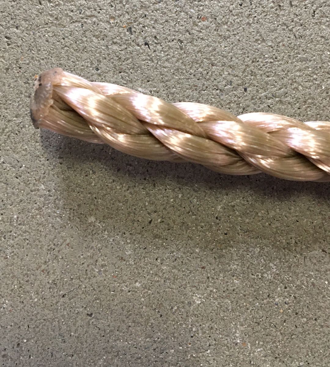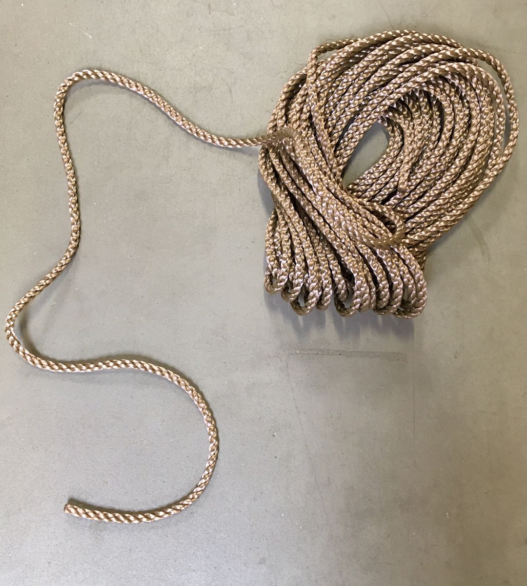 Nylonrepet har en diameter på ca. 10 mm. och har en brun/gyllen look.