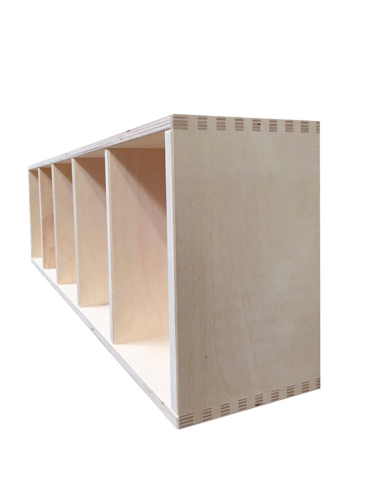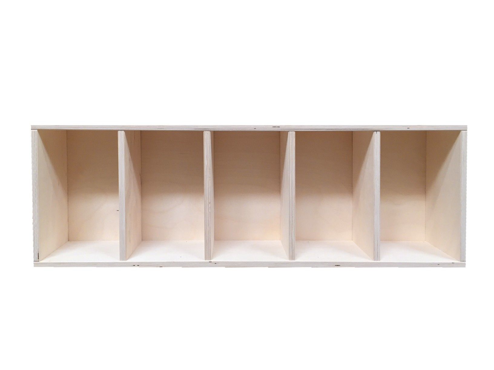 B25 H75 D14 cm. Flot og praktisk kasse i ubehandlet birkekrydsfinér. Inkl. 4 løse hylder. Du bestemmer selv, i hvilke højder de monteres. Hvis du monterer 4 stk. hylder passer afstandene ift. CD'er.