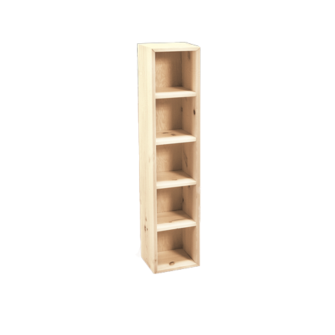 B16 H75 D14 cm. Ubehandlet fyr (indvendige mål B13,5 H13,5 D13 cm. pr. rum)