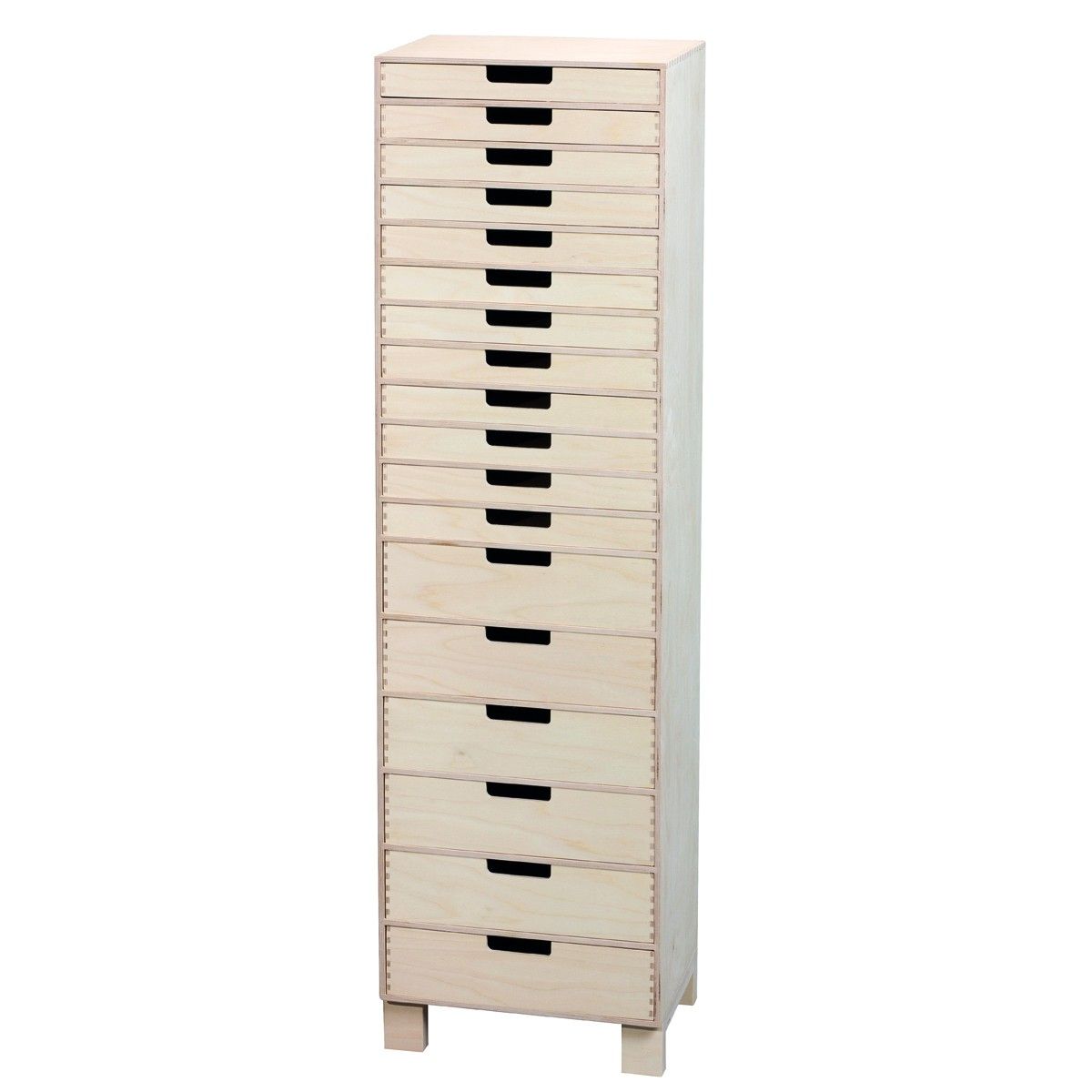 Minibyrå i björk plywood med 18 lådor (129x35xD25 cm.)