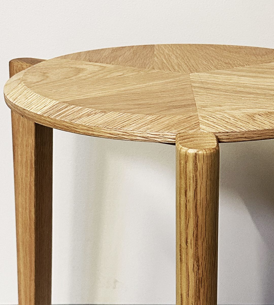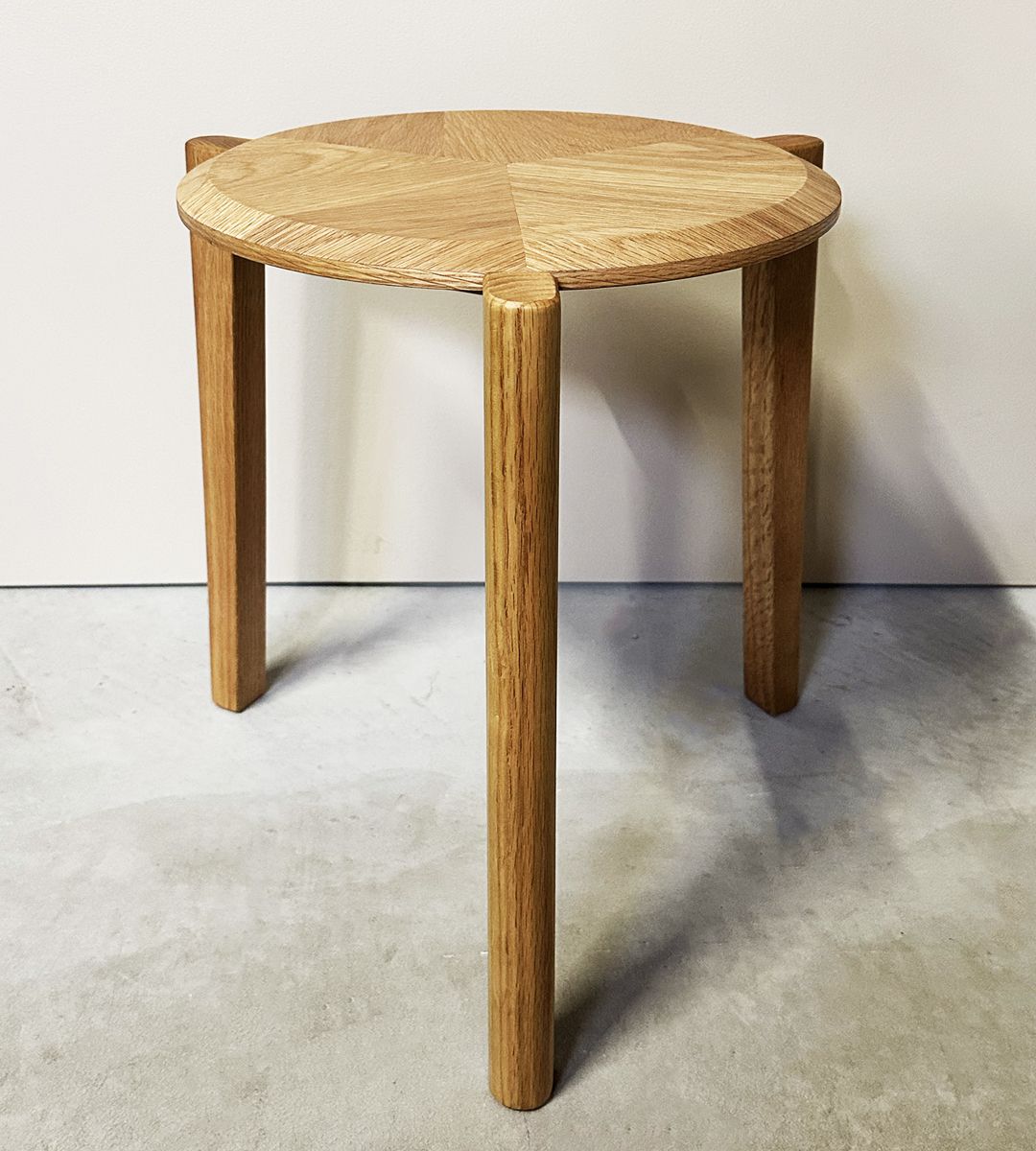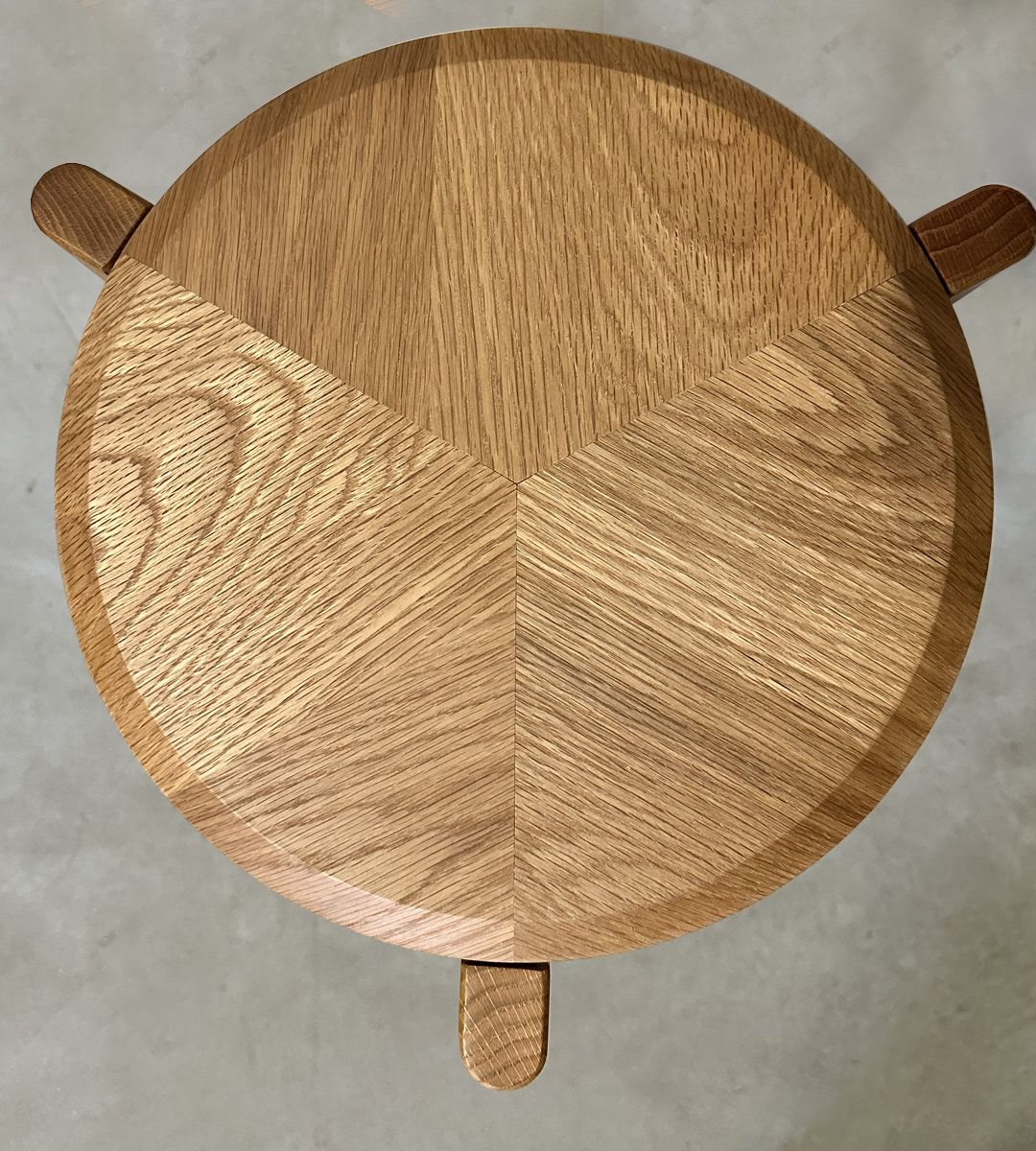 Pallen har 3 ben och mäter H45 cm. Sits Ø32 cm. Benen sticker ut 4 cm utanför sitsen.