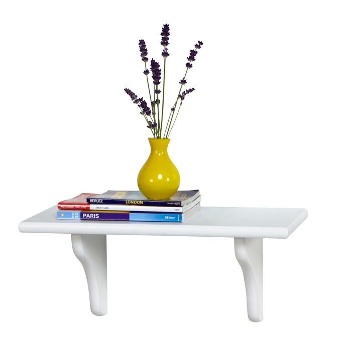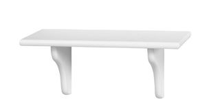 L40 D15 cm. Vägghylla i vitmålad MDF (inkl. 2 konsoler + fästen). Max belastning 10 kg. Finns i olika storlekar.