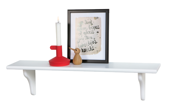 L70 D15 cm. Vägghylla i vitmålad MDF (inkl. 2 konsoler + fästen). Max belastning 10 kg. Finns i olika storlekar.
