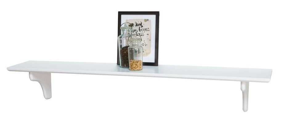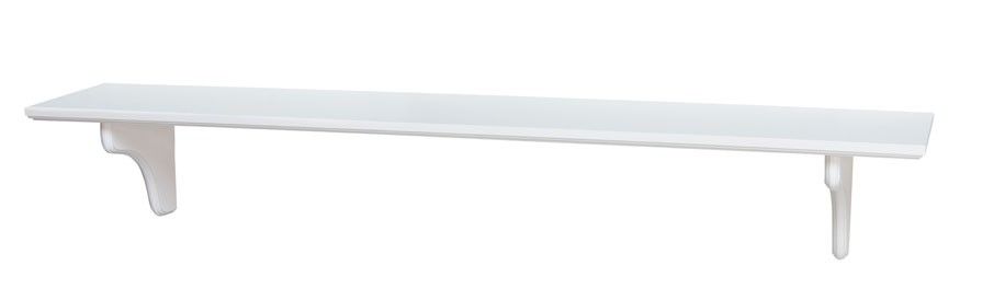 L120 D20 cm. Vägghylla i vitmålad MDF (inkl. 2 konsoler + fästen). Max belastning 15 kg. Finns i olika storlekar.