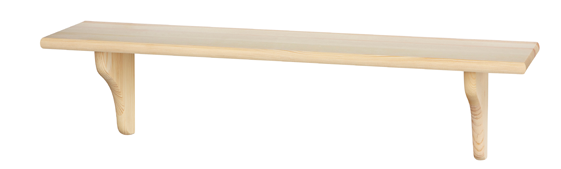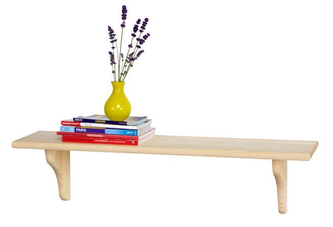 L70 D15 cm. Hylde i ubehandlet fyr inkl. 2 hyldeknægte og beslag. Max 10 kg.