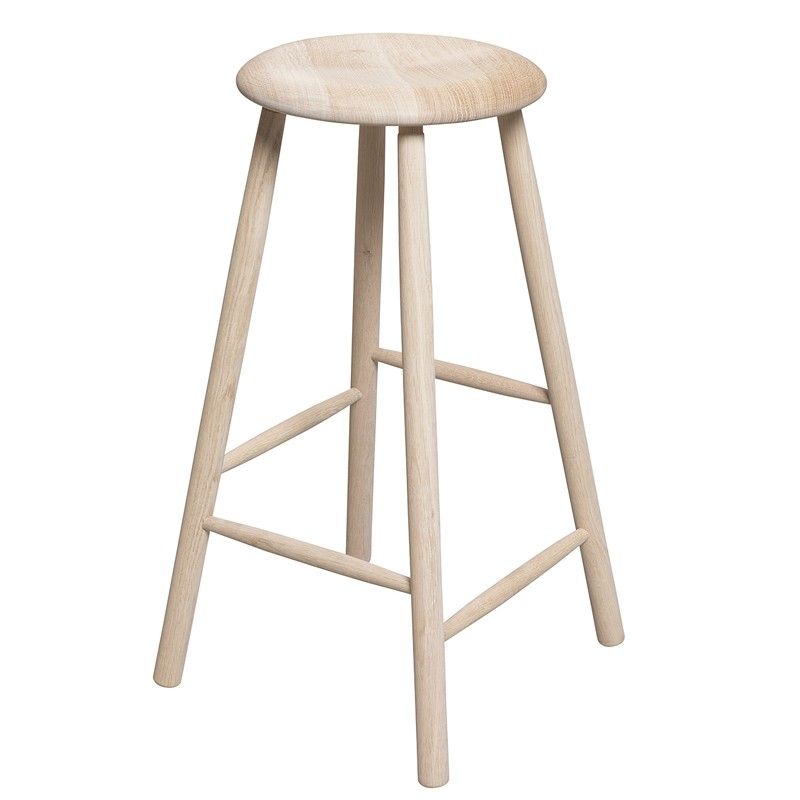 H70 cm barstol i massiv ask med runda ben och förskjutna tvärslåar.