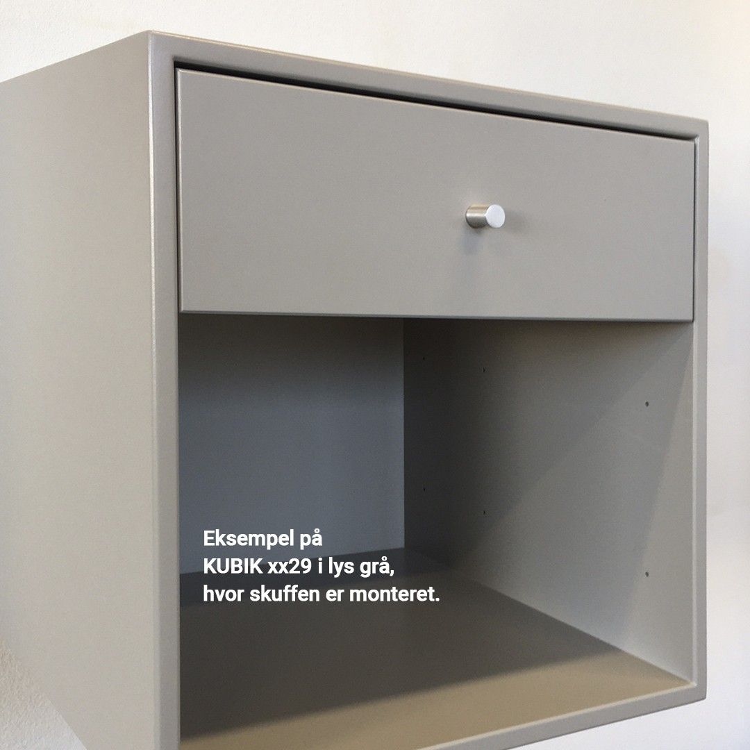 Den här bokhyllan är 35x35 cm och finns i 32 och 40 cm djup, med en låda. Bokhyllorna är målade på MDF. Välj mellan 11 färger och 2 djup genom att markera i fälten till vänster på sidan. Du kan alltid köpa extra tillbehör som hyllor och dörrar. Bokhyllan kan antingen stå på sockel eller ben, eller hänga på väggen med ett upphäng (beställs separat).