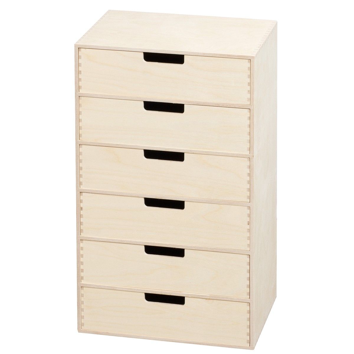 Minibyrå i björk plywood med 6 lådor (B35 H61 D25 cm.)