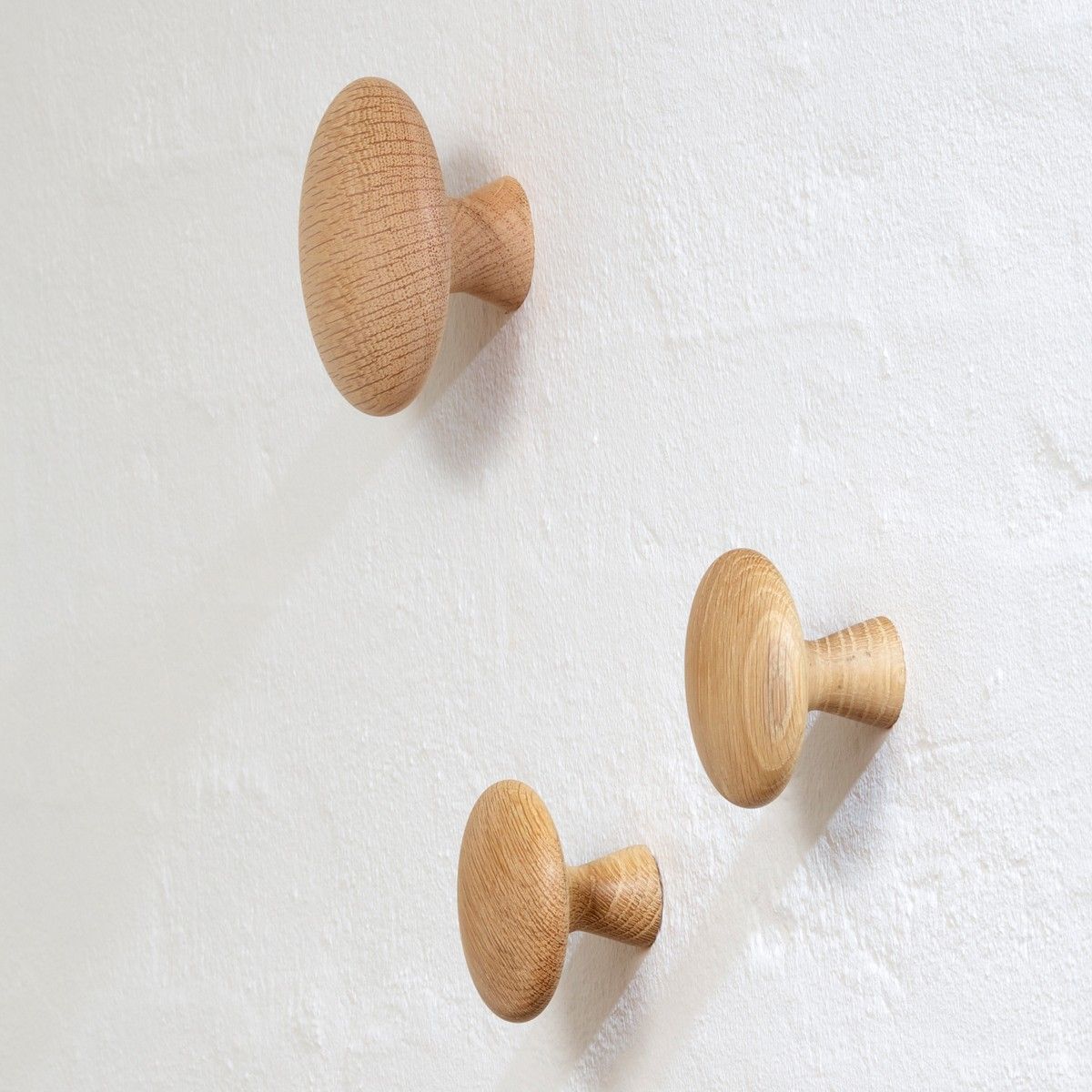 Place-It-knopp av massiv och hållbar obehandlad ek, som ger en varm och fin känsla i rummet. Fästet är dolt, så att den vackra eken får all uppmärksamhet
