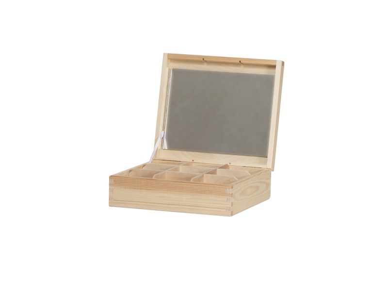 B24 L21 H8 cm. Hjälper dig att hålla ordning på smycken och smink Med spegel och lock
